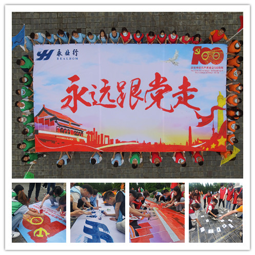 集训设立素质拓展环节,新员工们在一系列的团队拓展项目中,了解到只有相互理解、互相包容与相互支持,打破团队成员之间、部门与部门之间、上下级员工之间的隔阂才能顺利完成任务。并在大家的紧密协作下,完成了“永远跟党走”的主题巨型画卷,以庆祝中国共产党成立百年。